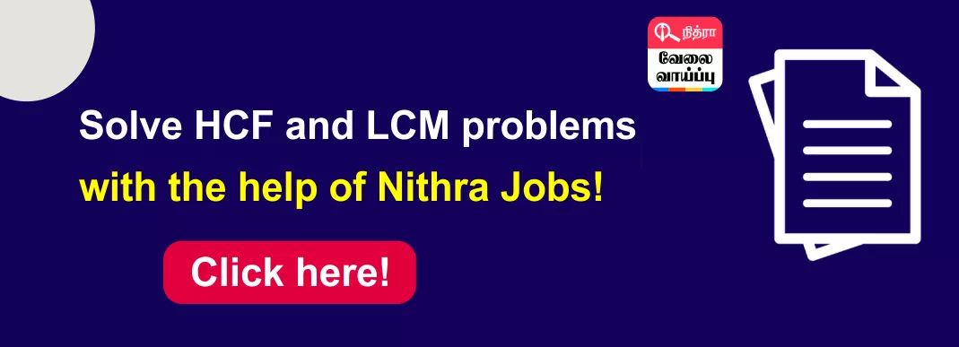 In this article we have given about how to solve HCM and LCM problems. HCF and LCM formulas are given for clear understanding by the users on Nithra Jobs site. It will be easy method for understanding and learning.