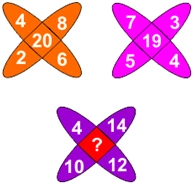 Multiply the central value by 2 and then subtract by the top value to get the bottom value.