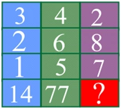 Here multiply the middle number with 3 and divide it by the top number to get the bottom number.