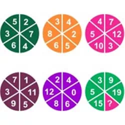Ex: Left hand circle: 5 * 2 = 10, 10 - 3 = 7, 2 * 2 = 4, 4 - 3 = 1, 7 * 2 = 14, 14 - 3 = 11, 4 * 2 = 8, 8 - 3 = 5, 6 * 2 = 12, 12 - 3 = 9, 3 * 2 = 6, 6 - 3 = 3