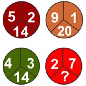 In each circle, the number in the lower segment equals the sum of upper two numbers and the answer with product 2 and get the final answer.
