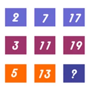 Starting top left, and moving down in columns from left to right, the numbers follow the sequence of Prime Numbers from 2 to 23.